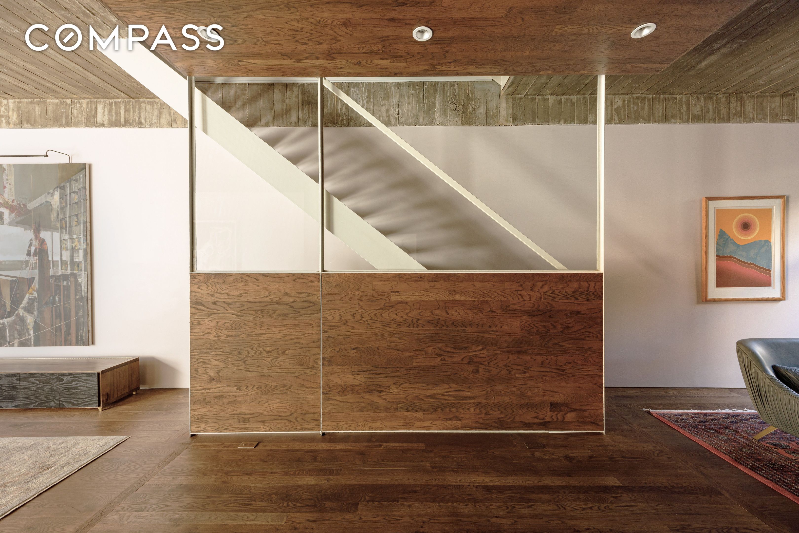 The interior design embraces clean lines and a warm, organic palette. Seven-inch wide plank white oak floors in a custom fumed chocolate finish run throughout the home. Board-formed concrete ceilings subtly reveal the grain of the wooden planks that shaped them--a tactile nod to Williamsburg's industrial past. Wood, steel, and concrete flow between indoor and outdoor spaces, a unifying theme across Wythe Lane. The exterior is equally considered, clad in water-struck coal-fired brick, gunmetal-gray stainless steel, and exposed concrete, punctuated by the development's signature verdant trellises.
