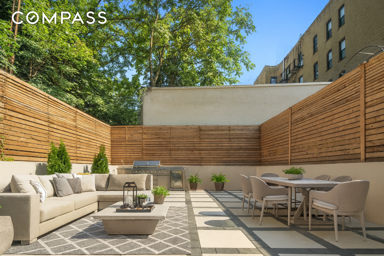 The lower level adds incredible versatility, with a spacious recreation/media room that opens directly to the lower terrace. Designed for seamless indoor-outdoor living, the landscaped yard includes an outdoor kitchen and grill station--perfect for entertaining or quiet evenings at home.