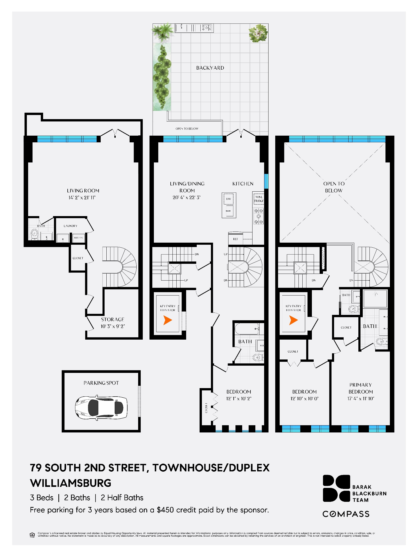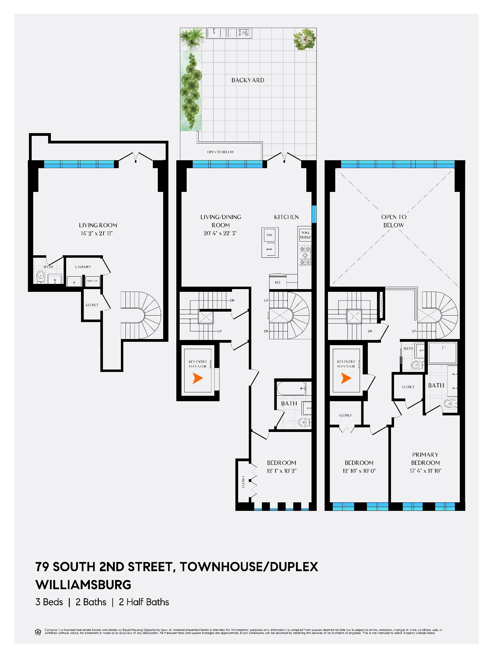 The Townhouse at 79 South 2nd Street delivers the rare privacy of a townhouse combined with the ease of ownership of a boutique condominium. This 3-bedroom, 2 full and 2 half bath triplex spans approximately 2,551 interior square feet plus an 817-square-foot landscaped garden, offering a spacious and elegant template for modern Brooklyn living.